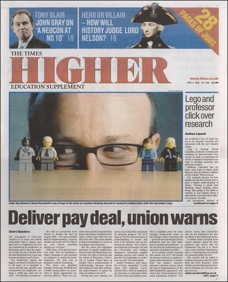 LEGO + ARTLAB COLLABORATION The Times Higher Education Supplement featured this cover story about the ArtLab collaboration with Lego Serious Play (April 2005). For more information see project information, and the ArtLab website in general. For the principles of this approach to creative research - and the findings from the Lego study - see the new book Creative Explorations (2007). Update: In September 2007, Creative Explorations was shortlisted for the Times Higher Young Academic Author of the Year Award (details).