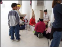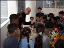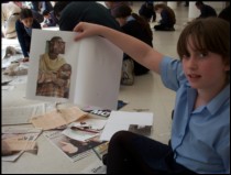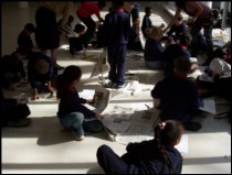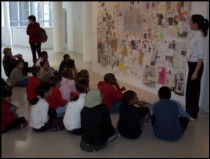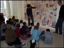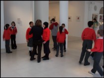 with the children being taken on a tour of the exhibition by the workshop leader,