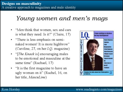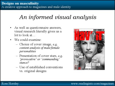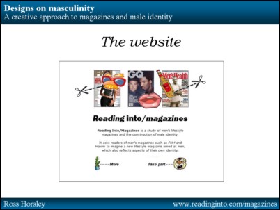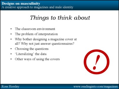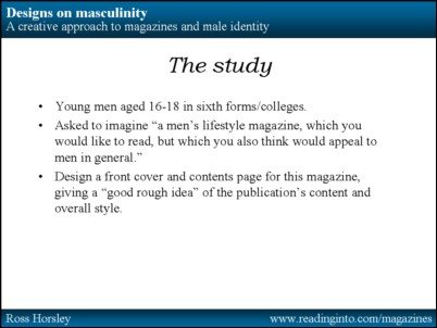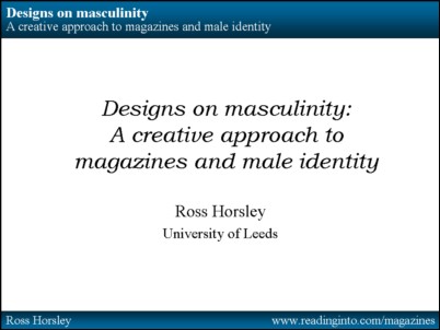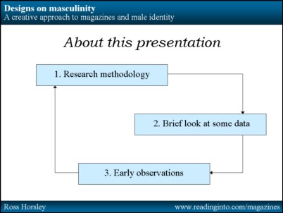 The Symposium continued with this presentation by Ross Horsley, who is completing his PhD (supervised by David Gauntlett) at the Institute of Communications Studies, University of Leeds. There are 27 images below, so you may need to wait while they load.