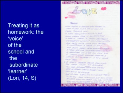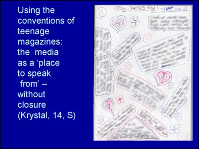 The Symposium continued with this presentation by Sara Bragg, of the Institute of Education (University of London), and University of Sussex. There are 31 images below, so you may need to wait while they load. To protect the anonymity of the young people who participated, their handwriting has been blurred in the scrapbook examples below (sorry).